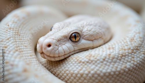 © Wpw, Fototapeta premium white snake close up, unique pattern skin, exotic reptile beauty