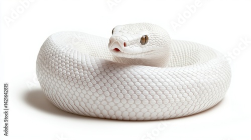 Fototapeta premium White snake coiled and looking forward in high-key studio light