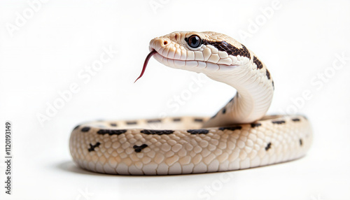 © Nelly, Obraz premium White snake coiled on a white background, year symbol, wildlife photography