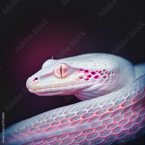 © hd3dsh, Fototapeta premium White snake on black background. Illustration AI