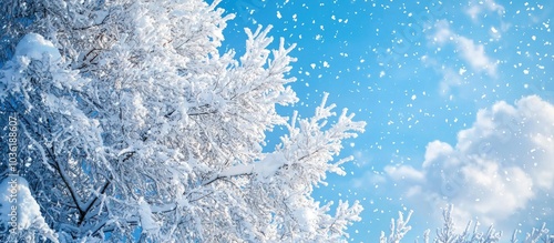 Fototapeta premium White Snow Against The Blue Sky Nature In Winter