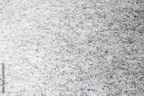 © Natia, Fototapeta premium White snow covered black surface. Snow on the ground.