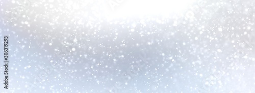 © avextra, Fototapeta premium White snow on light blue shade background. Silver bright shine abstract banner. Blurred pattern. Subtle abstract texture. Winter outdoor illustration.