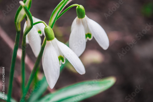 © Eugene B-sov, Fototapeta premium White snowdrops closeup with blurred background