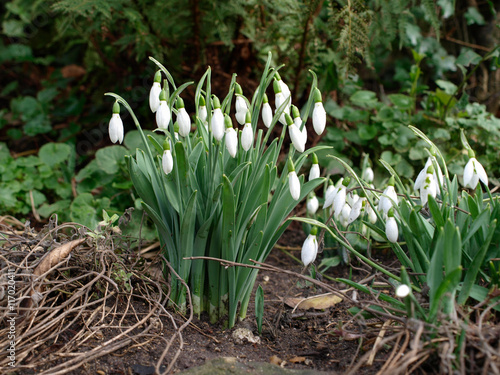 © skymoon13, Obraz premium White snowdrops on ground