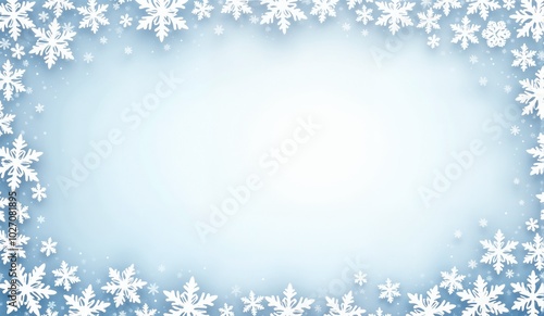 © Nataly, Fototapeta premium White snowflake border on light blue background with copy space