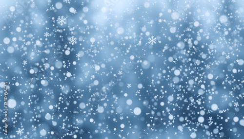 Fototapeta premium white Snowflakes and snowfall on a cold silver winter christmas background,...