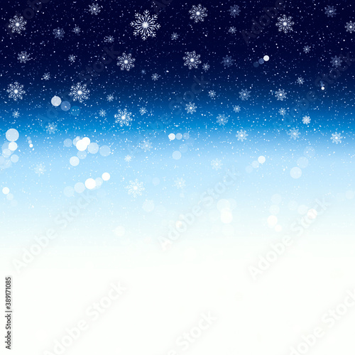 Obraz premium White snowflakes on blue white gradient background.