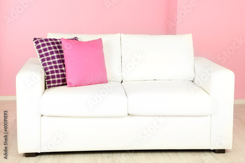 © Africa Studio, Obraz premium White sofa in room on pink background