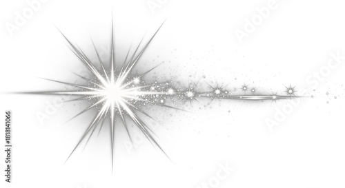© Aura Graphics, Fototapeta premium White sparkle light effect isolated on transparent background. Glowing silver white light. Shining star, light spark with rays. Light sparkle bling effect. Light PNG. Flare light, lens flare