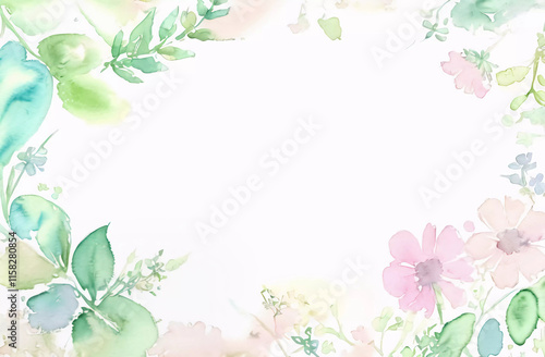 © Natali, Naklejka premium White spring background with frame. Generative AI