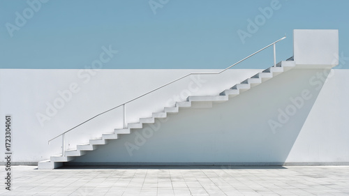 Fototapeta premium White staircase against blue sky and wall