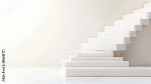 Fototapeta premium White Staircase Minimalist Design, Clean Bright Lighting, Curved Perspective...