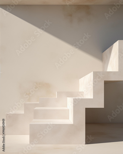 © Daranrat, Fototapeta premium White stairs in the room. Abstract image. White tones.