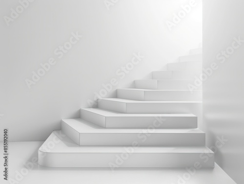 © Johannes, Fototapeta premium white stairs or steps going up on white wall background business achievement or career goal concept