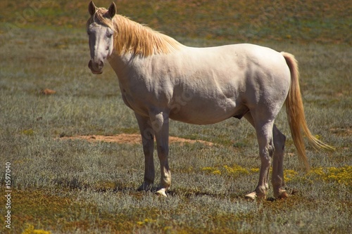 © John De Bord, Obraz premium white stallion horse in a field