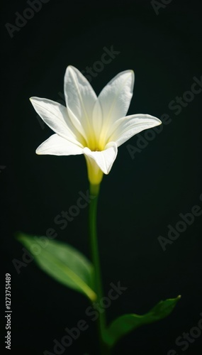 © Kingphet, Obraz premium White star leaf flower against stark contrast, photogenic, dark
