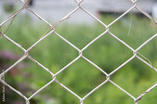 Fototapeta premium white steel wire fance and grass background