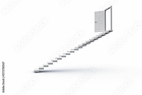 © vectorfusionart, Fototapeta premium White steps leading to open door