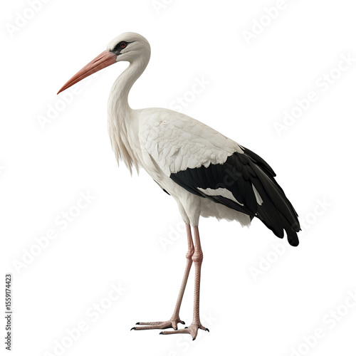 Fototapeta premium White stork bird profile view against black background long legs long neck...