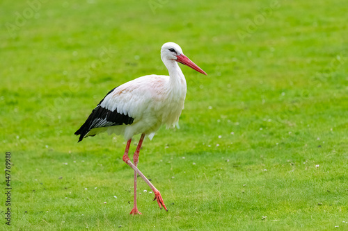 Fototapeta premium White stork, Ciconia ciconia standing on the grass, beautiful bird