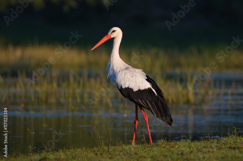 © Geza Farkas, Fototapeta premium White stork Ciconia on the swamp
