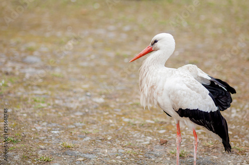 Fototapeta premium White stork in natural habitat walking and searching for food, Poplar tree...