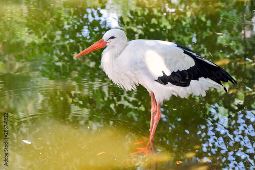 © KikkiaJackson, Fototapeta premium White Stork Portrait Standing in Pond