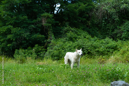 © Nariman, Obraz premium White stray dog ​​that looks like a wolf
