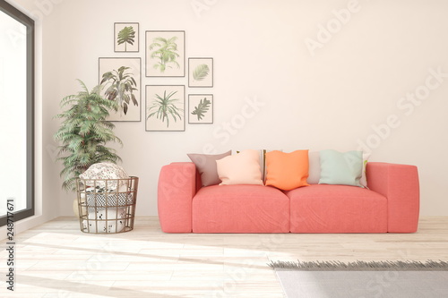 Fototapeta premium White stylish minimalist room in hight resolution with coral sofa....
