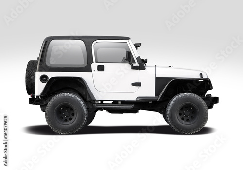 Naklejka premium White SUV side view isolated on white background