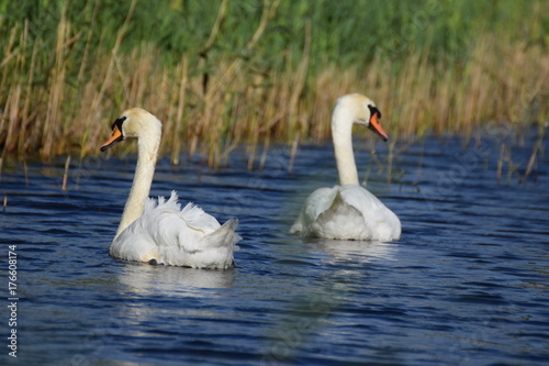 Fototapeta premium White swan bird swimming