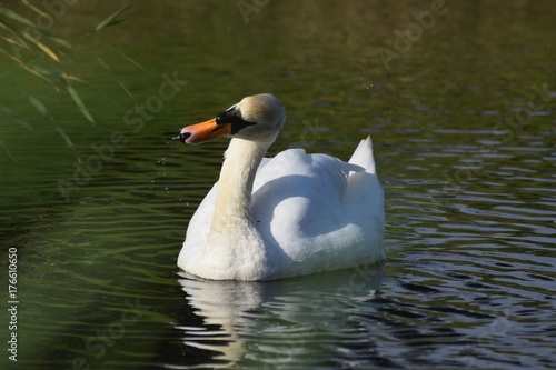 Fototapeta premium White swan bird swimming