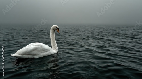 © Factory Stock, Fototapeta premium White swan on dark water