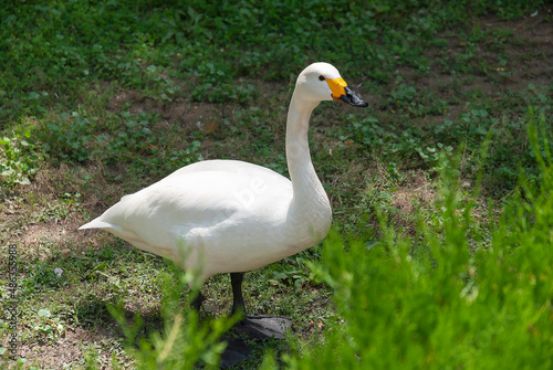 Fototapeta premium white swan on the green grass