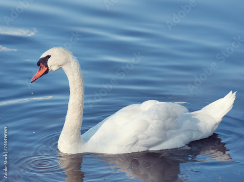 © SunnyS, Naklejka premium White Swan Swims in a Lake.