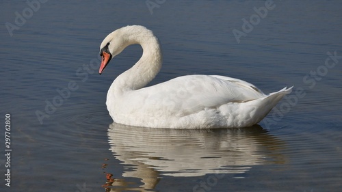 © Rbizon, Fototapeta premium White swan swims on the lake.