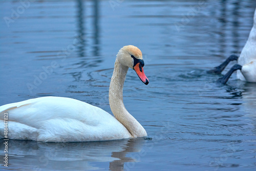 © yura2087, Fototapeta premium White swan swims on the river early spring.