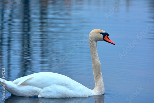 © yura2087, Fototapeta premium White swan swims on the river early spring.