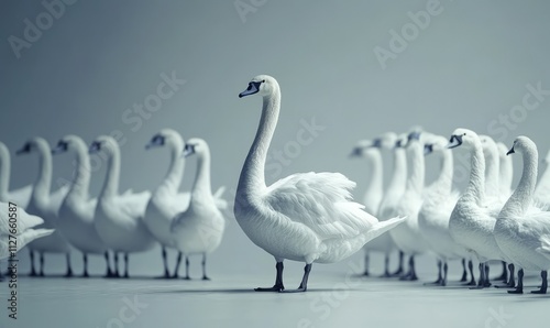 Fototapeta premium White swans, different leader identities, crowd leadership