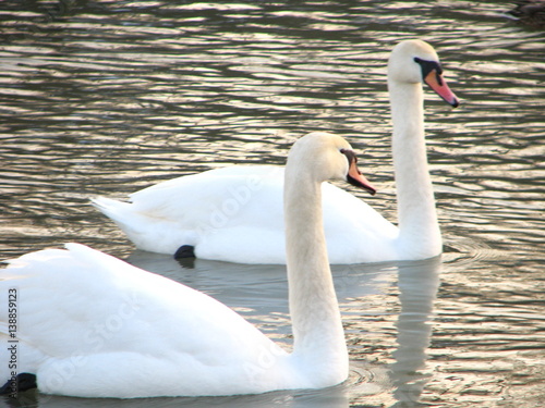 © bicdibus, Obraz premium white swans floating the river