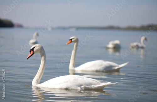 Fototapeta premium white swans on river