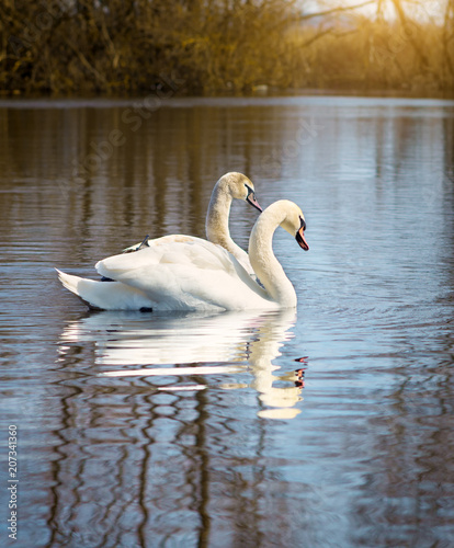 © Nemeziya, Naklejka premium white swans on the river.