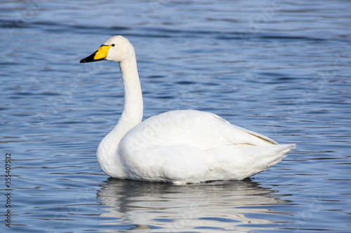 © gumbao, Fototapeta premium White swans swimming in the nonfreezing winter lake