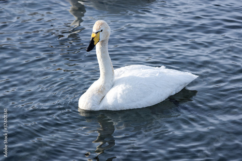 Fototapeta premium White swans swimming in the nonfreezing winter lake
