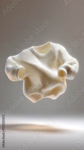 Obraz premium white sweater floating horizontally in the air, descending from the ceiling...