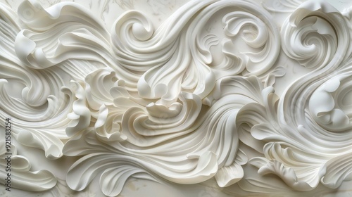 Fototapeta premium White swirling ornate design with a 3D effect on a marble background.