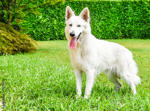 Obraz premium White Swiss Shepherd standing up.