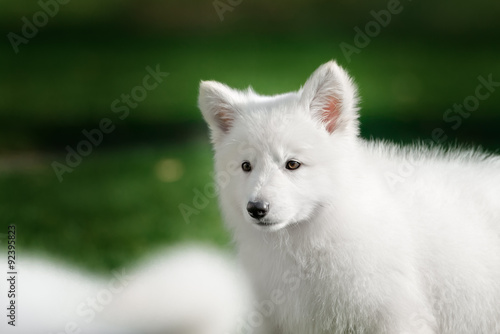 © brusnikaphoto, Naklejka premium White Swiss Shepherds puppy
