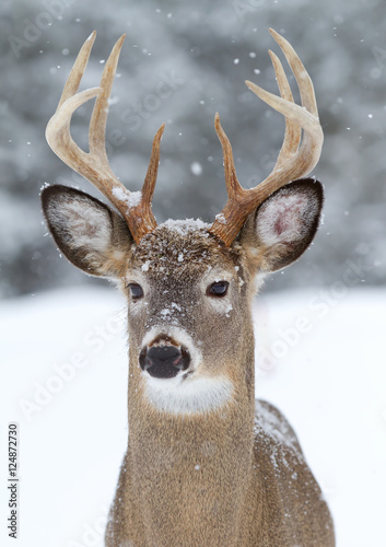 © Jim Cumming, Fototapeta premium White-tailed deer buck closeup in winter in Canada